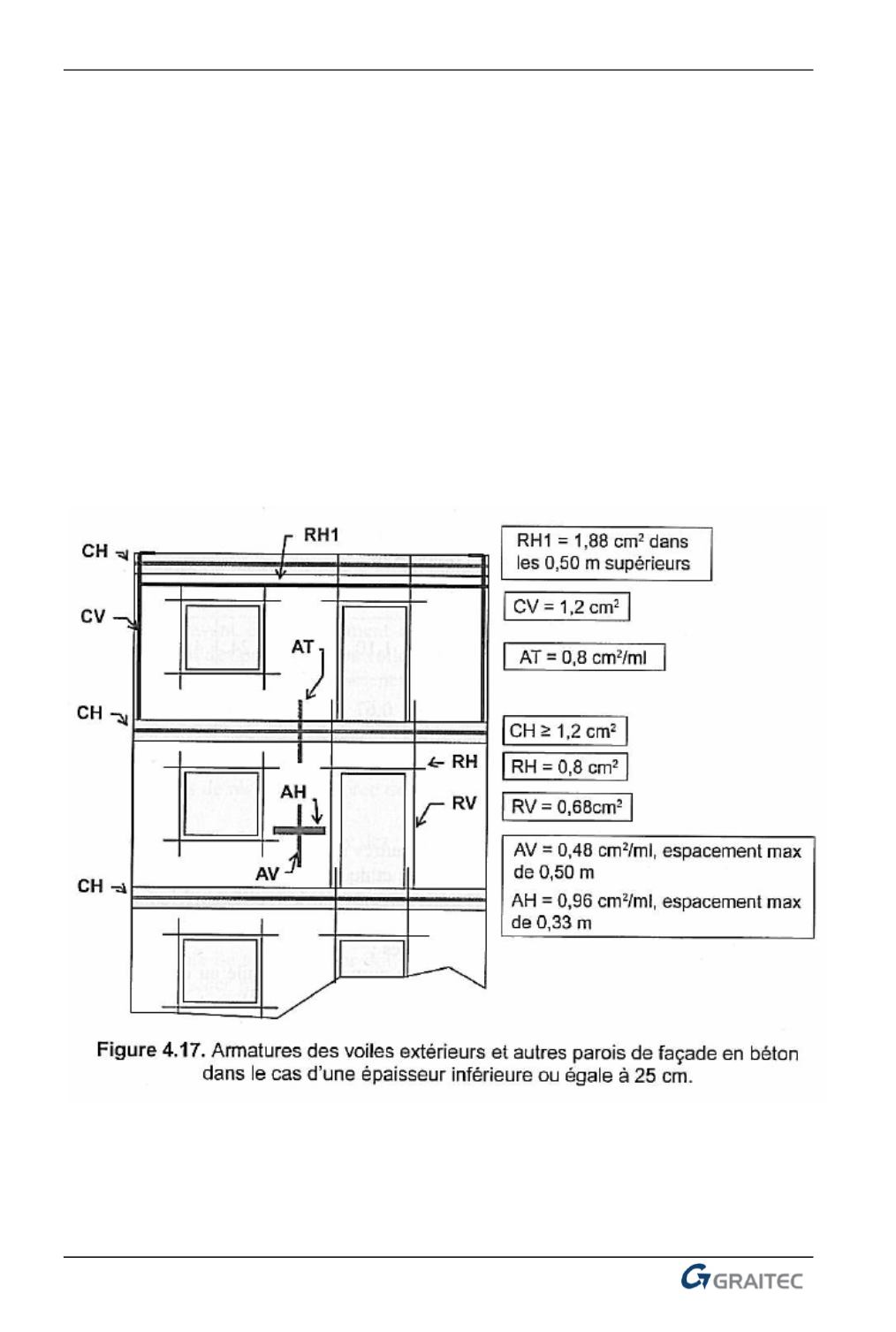 Des armatures verticales (notées RV ci-dessous) renforçant les