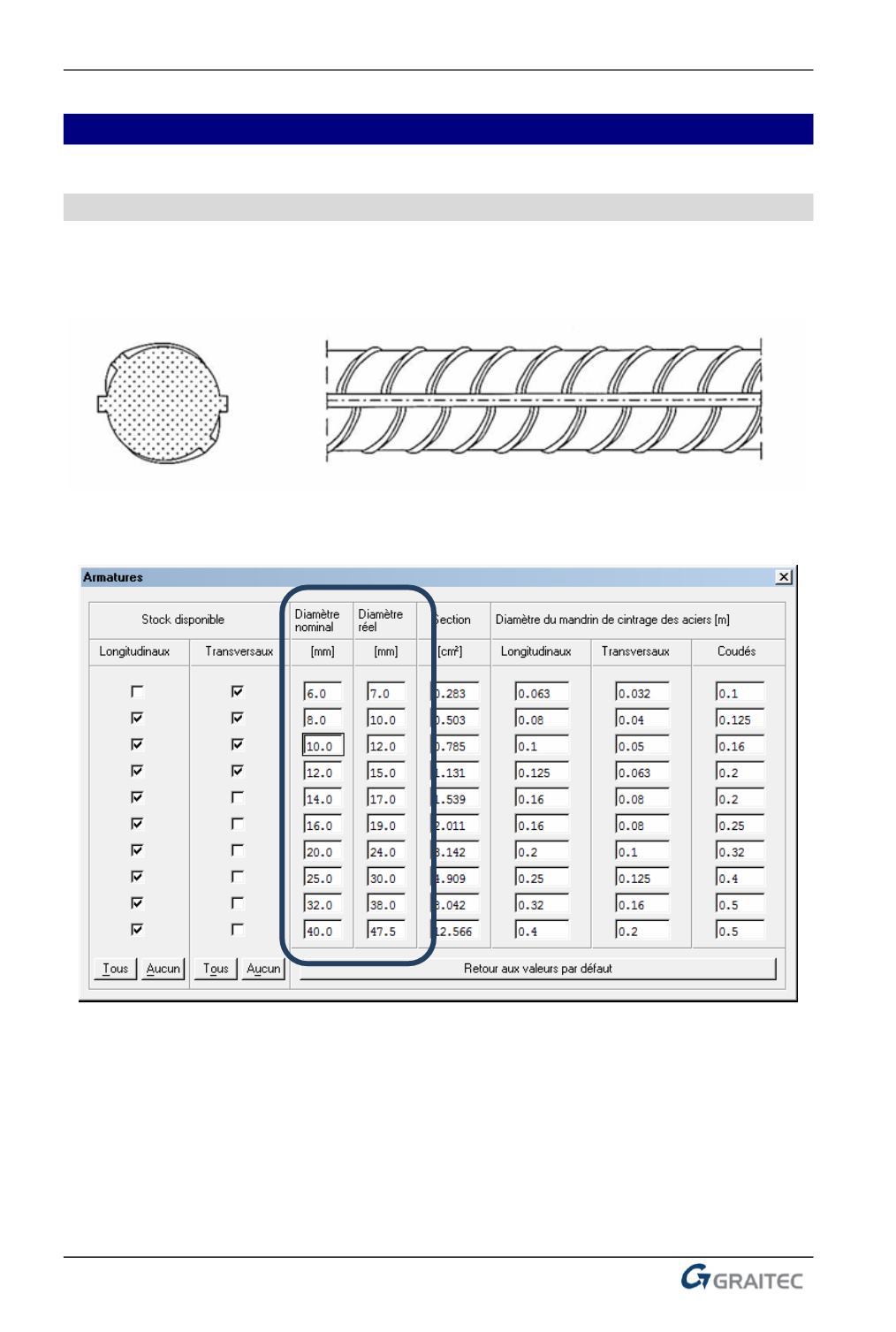 L’utilisateur peut définir un diamètre nominal et un diamètre réel pour chacune